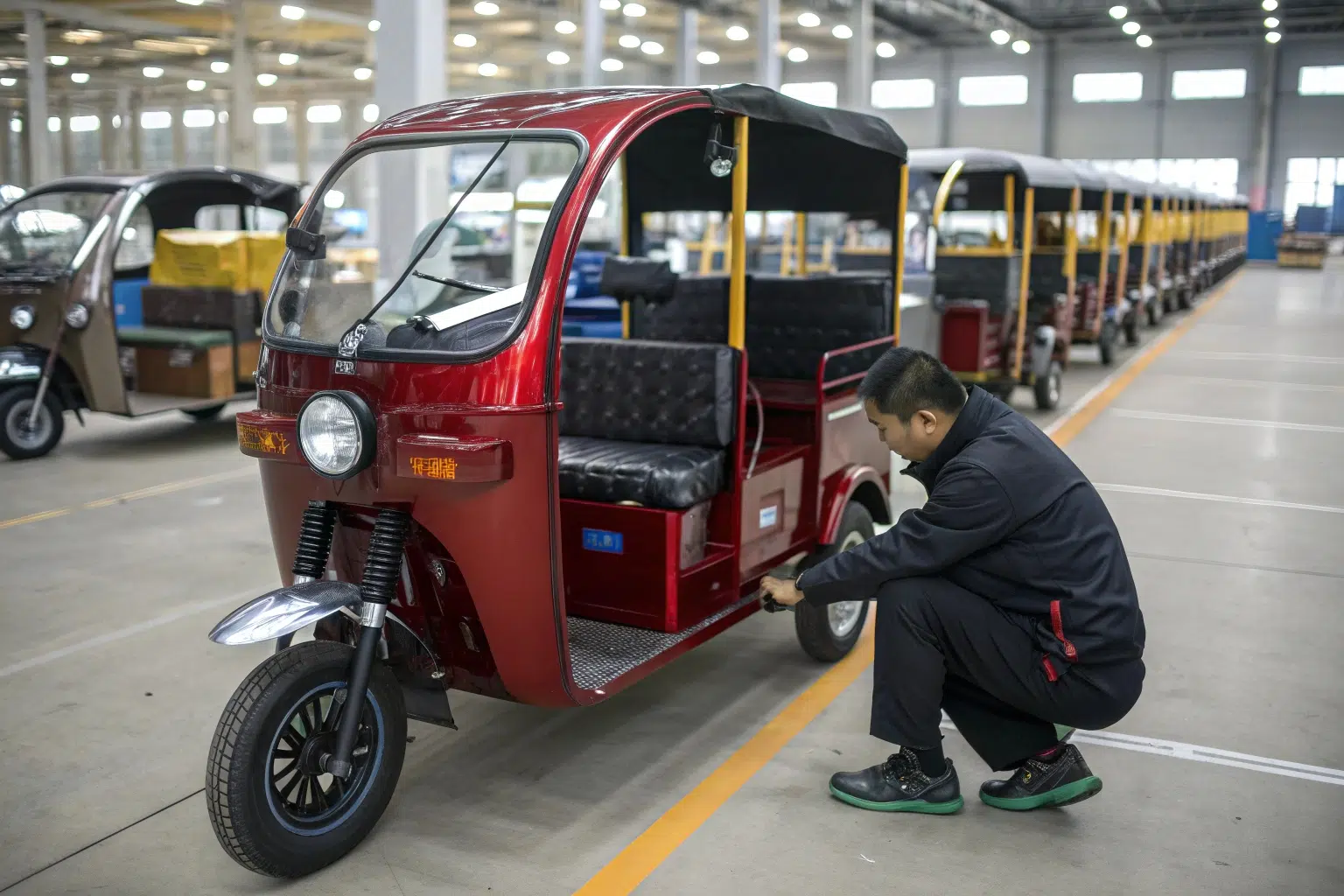 You should ask potential suppliers about their QC process. Do they inspect incoming raw materials? Do they have quality checkpoints on the assembly line (e.g., for welding, painting, and electrical systems)? Do they perform a final test drive on every tuk tuk electric vehicle before packing? A professional factory will be proud to explain their QC system. For a product like an electric freight tuk tuk, the frame welding and load-bearing capacity are critical quality points to discuss.