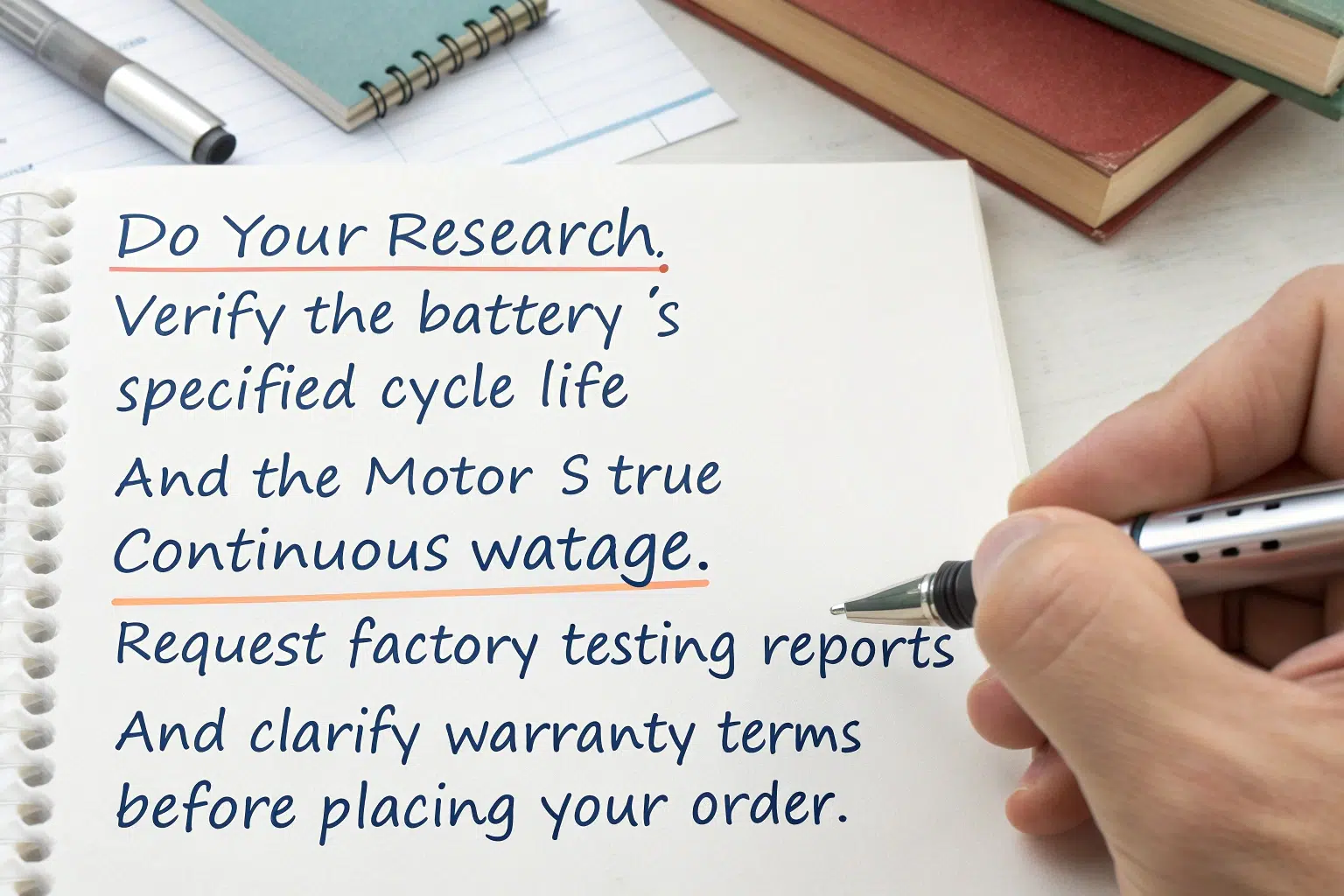 Do your research. Verify the battery's specified cycle life and the motor's true continuous wattage. Ask for factory testing reports and clarify the warranty terms for these critical components before you place your order.