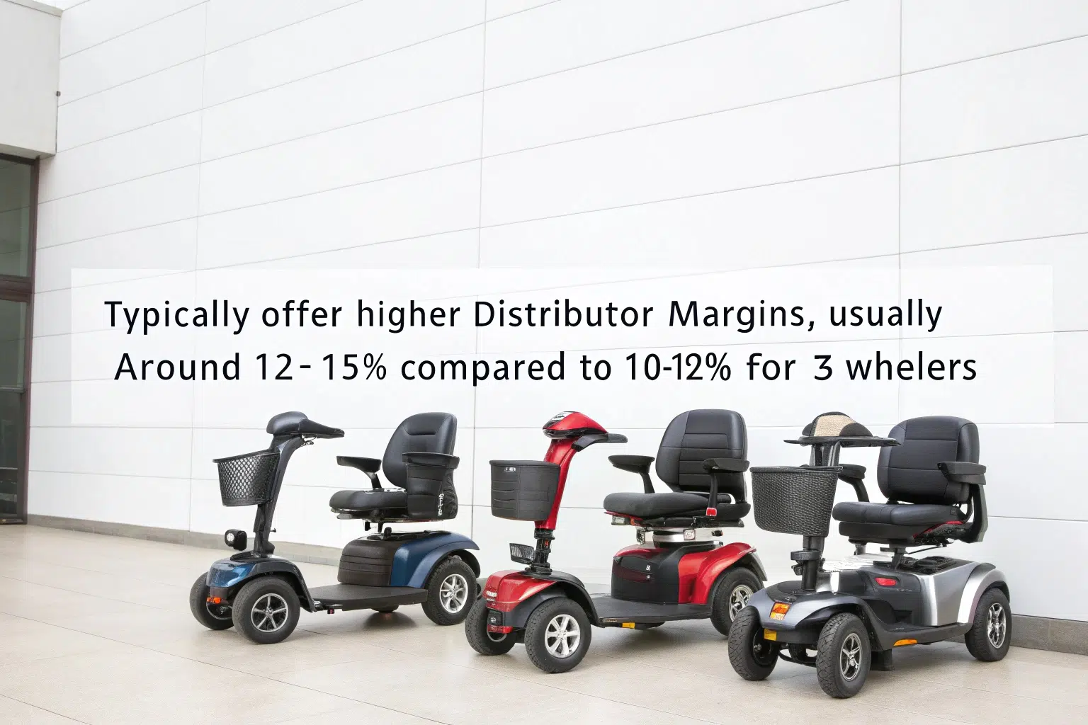 Четырехколесные скутеры обычно предлагают более высокую прибыль дистрибьюторам, обычно около 12–15% по сравнению с 10–12% для трехколесных транспортных средств. Их более высокая воспринимаемая ценность, дополнительная стабильность и премиальные функции позволяют дистрибьюторам устанавливать более высокую розничную цену.