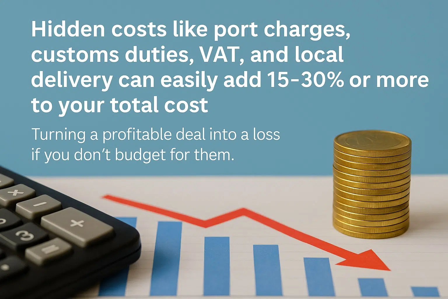ค่าใช้จ่ายแอบแฝง เช่น ค่าธรรมเนียมท่าเรือ อากรศุลกากร ภาษีมูลค่าเพิ่ม และการจัดส่งในพื้นที่สามารถเพิ่ม 15–30% หรือมากกว่าในต้นทุนรวมของคุณได้อย่างง่ายดาย เปลี่ยนข้อตกลงที่ทำกำไรให้กลายเป็นขาดทุนหากคุณไม่จัดสรรงบประมาณไว้