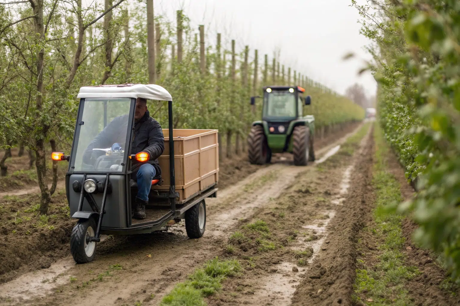 Your large tractor is too clumsy for tight spaces, and using a wheelbarrow is slow and exhausting. You have narrow orchard rows, greenhouse aisles, or muddy paths where big machinery just can't go.